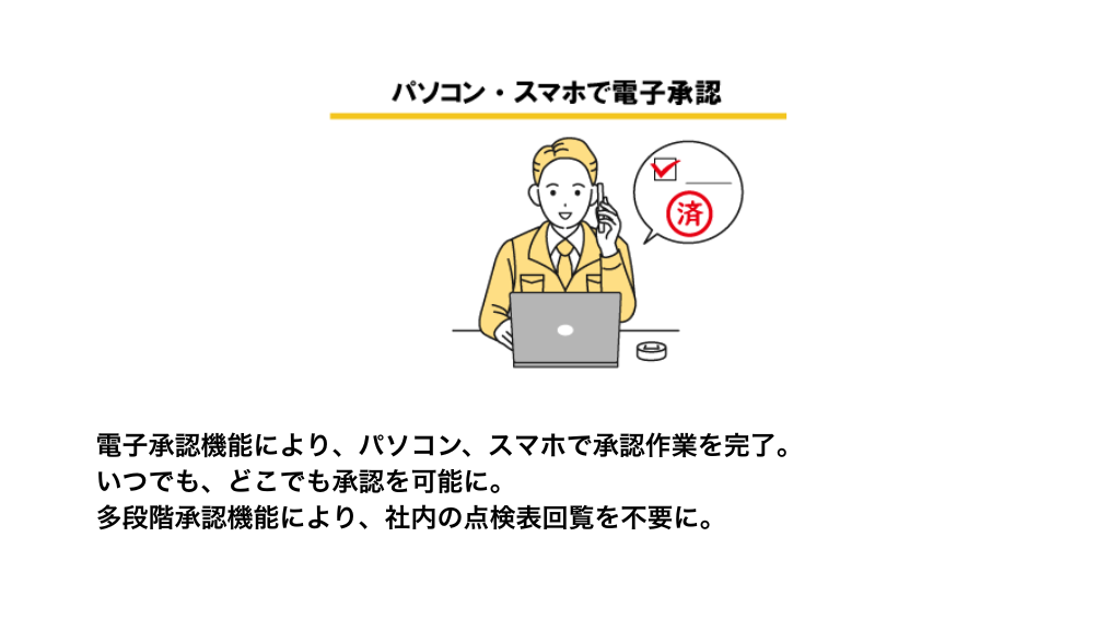 点検表の回収を不要に、点検承認をスマート、安全点検業務を効率化するサービスです。