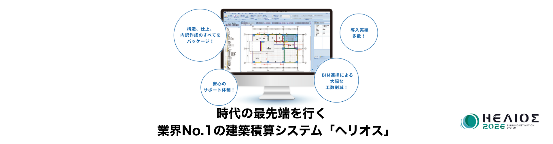 選ばれ続けて40年。建築積算なら、業界No.1ソフト「ヘリオス」