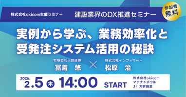 SEMINAR 会社を元気に!仕事を楽しく!BIM・CIM、3次元やドローンなどの最新技術を通じてITパワーをお伝えします! オフライン GLOOBE Architect体験会 02/18(水) 1部:13:30〜15:30 ご好評により受付は終了しました。 オフライン 建設業界のDX推進セミナー ~実例から学ぶ、業務効率化と受発注システム・・・ 02/05(木) 1部:14:00〜15:00 ご好評により受付は終了しました。 オフライン GLOOBE Architect体験会 01/22(木) 1部:13:30〜15:30 ご希望の日程を選択可能 ご好評により受付は終了しました。 オフライン BIM/CIMセミナー~中小企業が指定工事以外でもBIM/CIMを活用・・・ 11/05(水) 1部:14:00〜15:45 ご希望の日程を選択可能 ご好評により受付は終了しました。 オフライン 建築×生成AIセミナー 生成AIが変える、建築業界の未来 ~現場もバッ・・・ 11/11(火) 1部:14:00〜16:00 ご希望の日程を選択可能 ご好評により受付は終了しました。 オフライン ICT施工の最前線 in 宮古島~ほ場整備の3次元データ活用体験~ 10/16(木) 1部:14:00〜17:30 ご希望の日程を選択可能 ご好評により受付は終了しました。 ウェビナー 発注者の単価を入札時に活用! 積算精度・落札率UP?! 09/25(木) 1部:09:30〜10:10 2部:11:00〜11:40 3部:13:30〜14:10 ご希望の日程を選択可能 ご好評により受付は終了しました。 オフライン 3Dデータ作成ステップアップセミナー~入門編~ 09/18(木) 1部:13:30〜15:30 ご希望の日程を選択可能 ご好評により受付は終了しました。 ウェビナー 【沖縄県ATLUSユーザー限定】無料CPDSユーザー会 2025年9月 09/11(木) 1部:10:00〜12:00 2部:14:00〜16:00 ご希望の日程を選択可能 12345...10... »